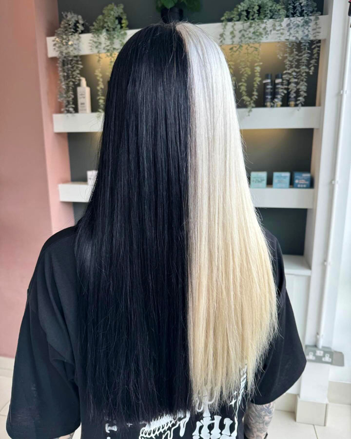#wella #blackhair #blondehair #wellaeducation #wellaprofessional #wellasalon #halfandhalfhair #hairinspiration #hairinspo #wellaprofessionals #wellaformula #wellatoner #crazyhair #hairart